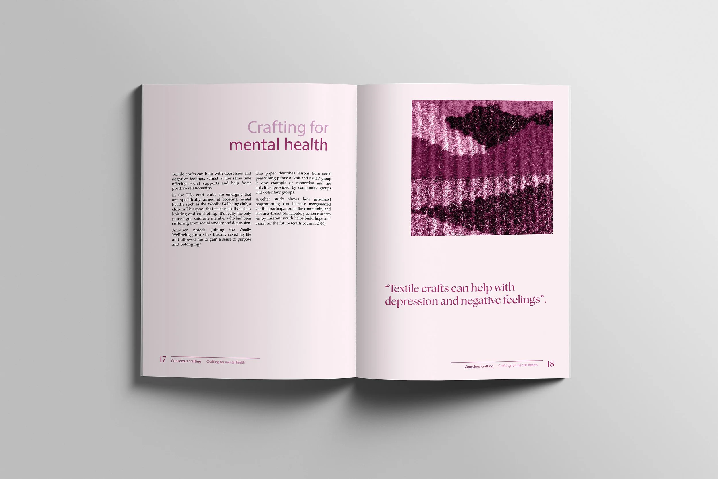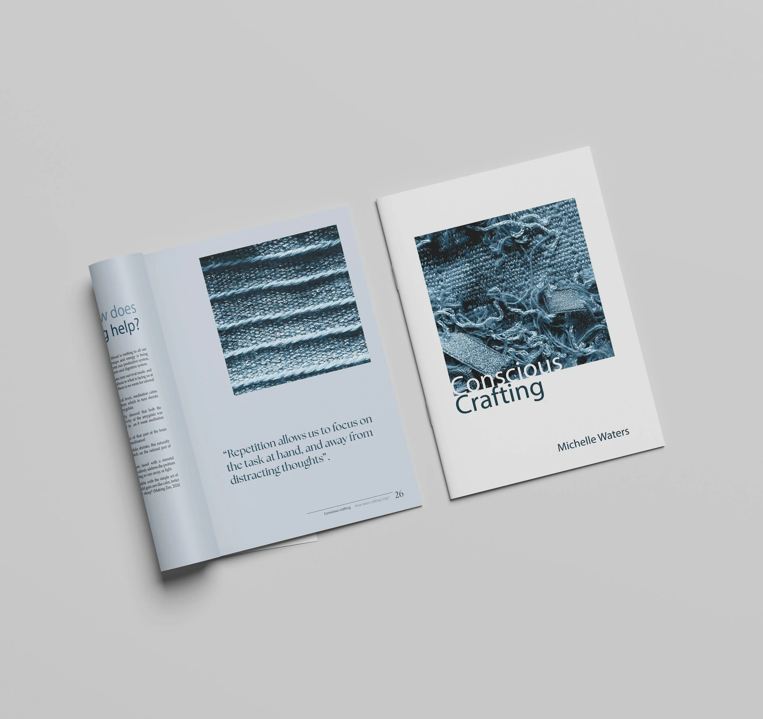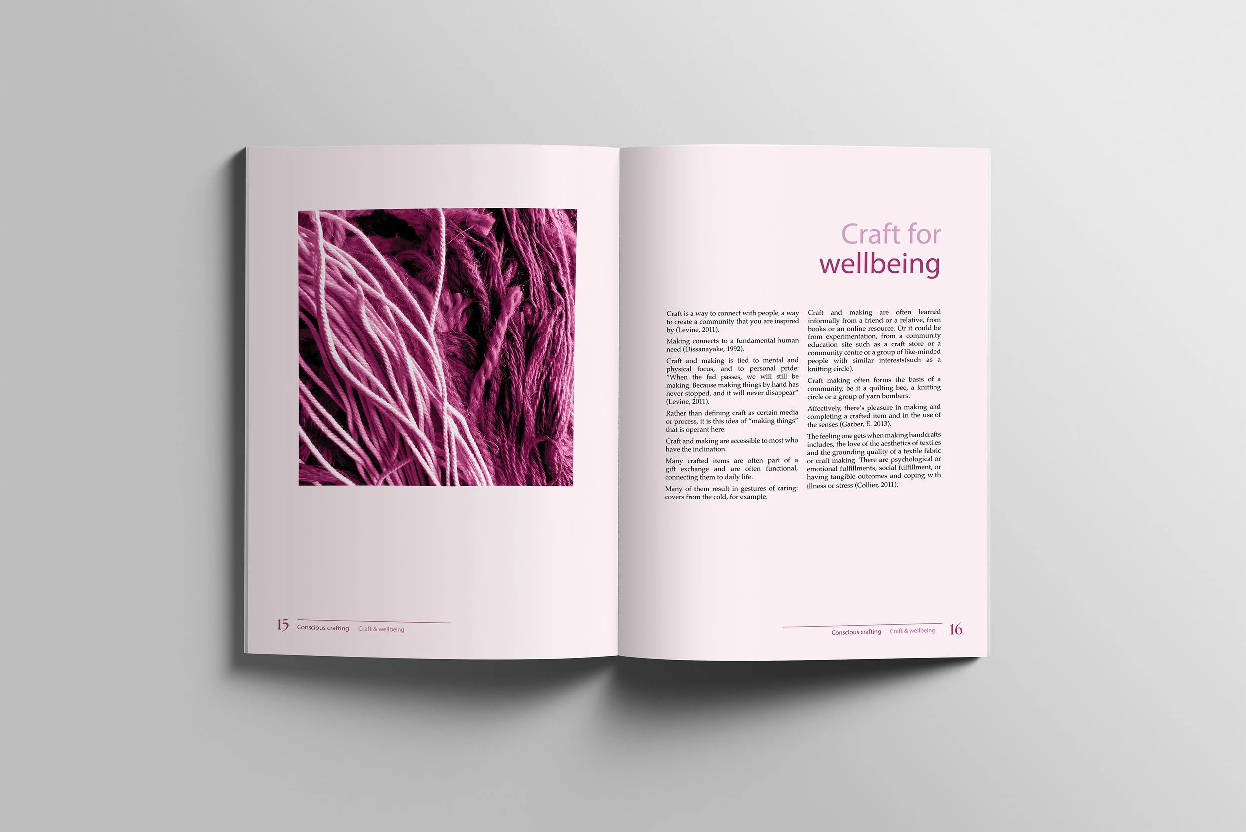 A publication based on the benefits of mindfulness crafting on mental health in the 21st century. The result is a beautifully curated book, packed with information for readers with imagery of different craft techniques and materials.